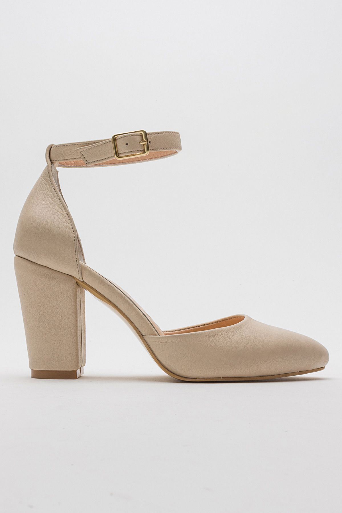 HAKİKİ DERİ KREM YÜKSEK TOPUKLU STİLETTO